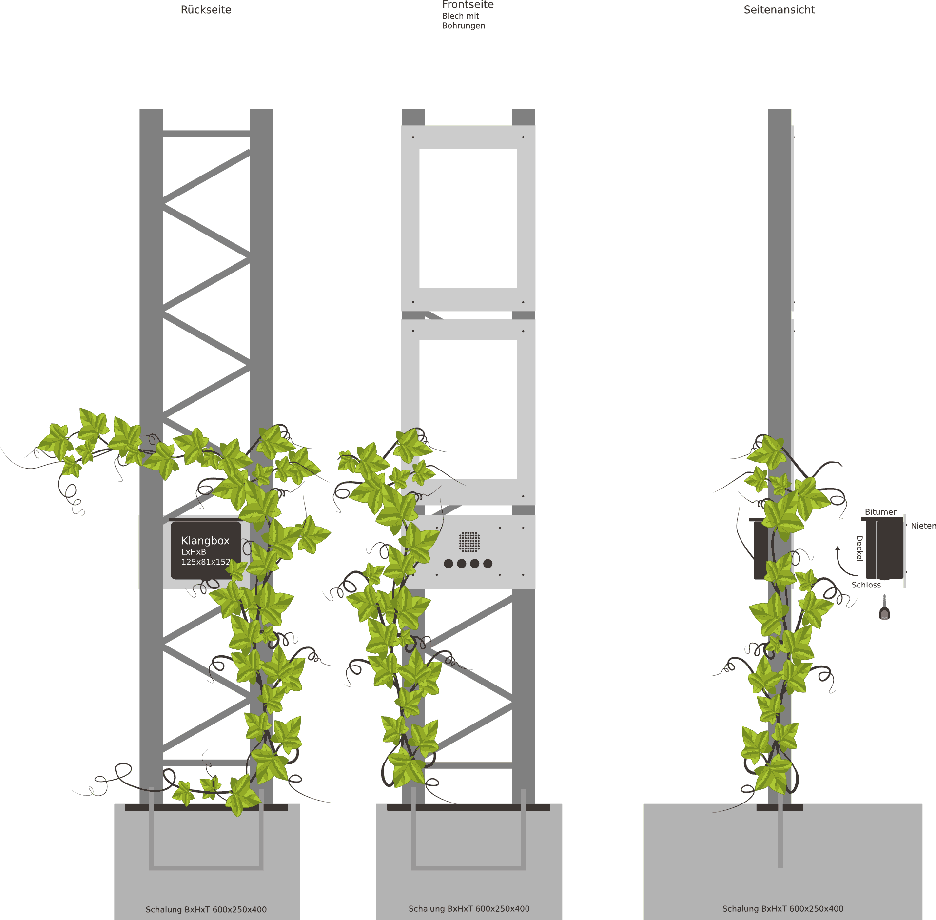 Entwurf v. Jörg Reinhard, Bewuchs der Traverse mit Efeu (zum Freischneiden)